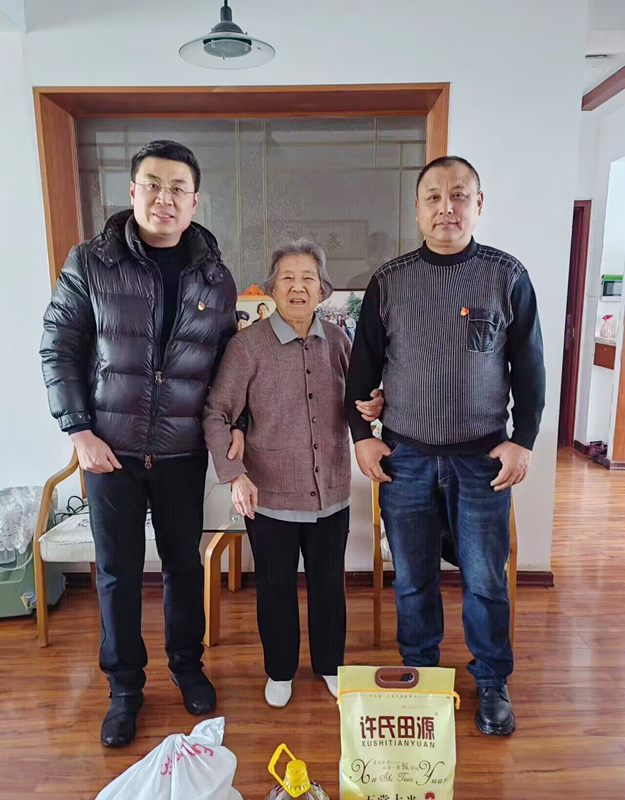 林恩全、宗波、张佳琪、王军一行四人代表烟台分公司党支部来到“双报到”社区困难党员和退休老干部家中,与老人亲切交谈,详细了解他们的身体状况和生活情况,倾听需求和困难,嘱咐老人保重身体,并送上米面油等慰问品及新春祝福。