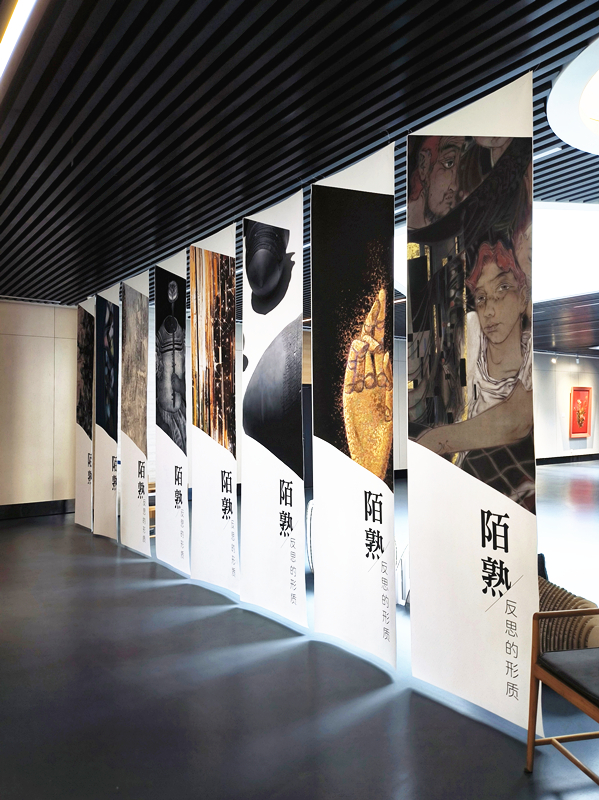 在岱宗艺术空间内,一场以“陌熟:反思的形质”为主题的展览正在进行。展览以当代艺术作品为核心,通过这些艺术作品引发对生活的思考。在济南国际创新设计产业园广场上,40余家集市摊位三三两两分布其中。这些摊位都是由本土的原创品牌或个人搭建而成,展示着各自独特的文创产品或手工艺品。